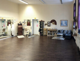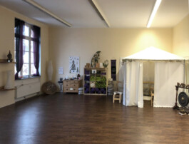 equipped with a greenscreen and standing table, and provide a relaxed setting for a therapeutic practice corner designed for individual sessions.