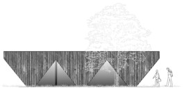 The structure of TENT, resembling an open tent, promotes a collaborative working environment through its unconventional interior layout. The building, constructed with modern timber framing, accommodates up to ten workstations, an adjacent seminar room for uninterrupted meetings, and a cosy tea kitchen for relaxation. Featuring a trapezoidal design, the architecture surprises with a spacious interior and open window fronts on all sides, allowing abundant natural light and unobstructed views of the green courtyard. This design seamlessly connects the indoor and outdoor spaces, creating an optimal setting for a relaxed and informal working atmosphere.